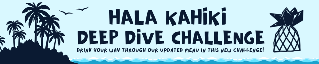 Take a dive into our updated menu with the Hala Kahiki Deep Dive Challenge! Try out drinks from every category to unlock special discounts and rewards. Starting in January, we’re launching an expedition into the depths of our menu and we’re inviting you to explore with us! To complete this dive, we challenge you to explore every category of our menu, even the ones you might be unfamiliar with! Rediscover the classics, try something out of your comfort zone and maybe even find a new favorite. The challenge starts as soon as you write your name on your Diver Card, and ends on December 30th, 2026!